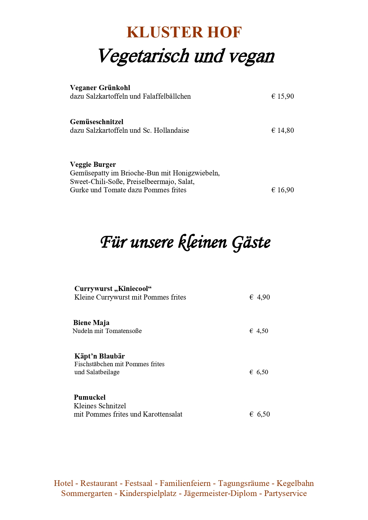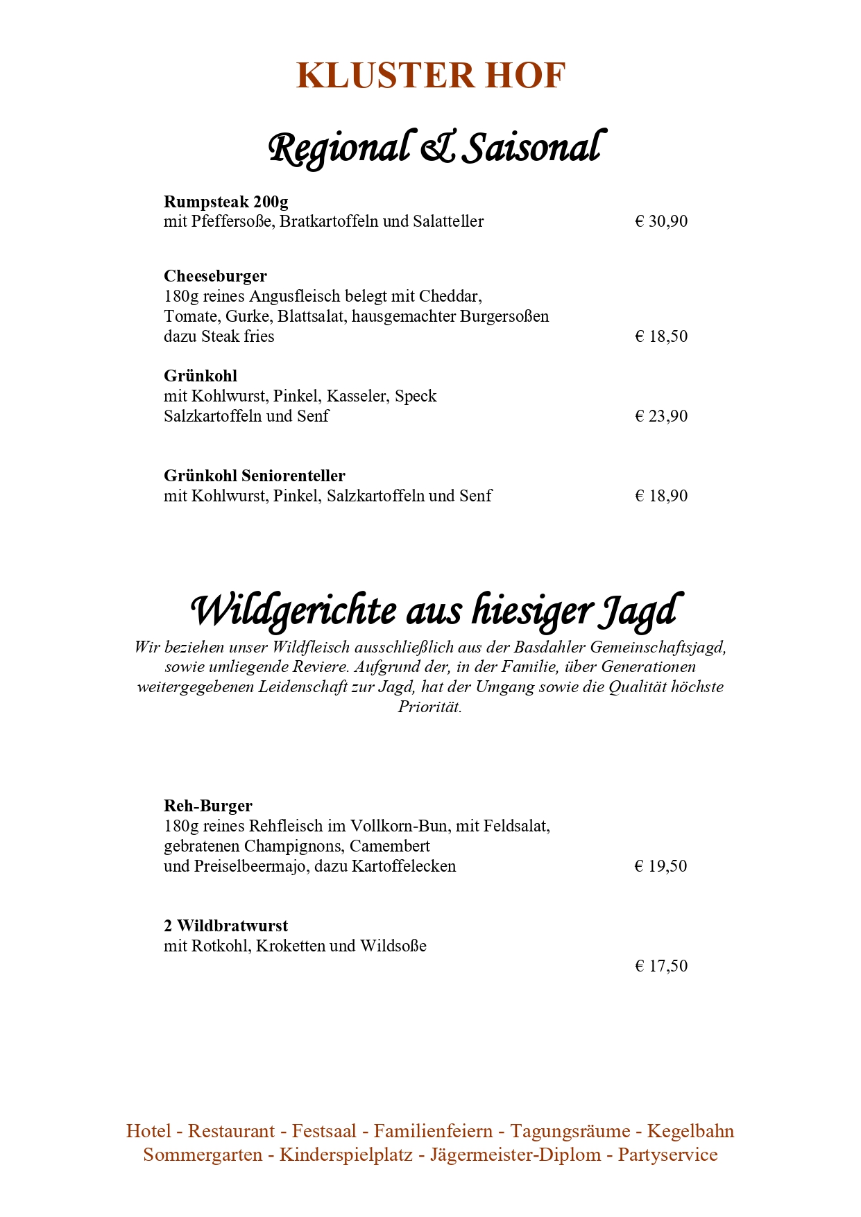 Gerne verwöhnen wir Sie mit feinen Köstlichkeiten und regionalen Gerichten, die wir stets frisch für Sie zubereiten. Genießen Sie auch unsere Wildspezialitäten und norddeutschen Klassiker wie Matjes oder Grünkohl. Bei gutem Wetter lädt unser Kaffee- und Biergarten mit Kinderspielplatz zum gemütlichen Verweilen und Entspannen ein.